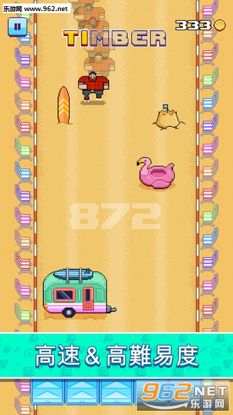 在这款快节奏的街机游戏中考验伐木工的滑轮技巧!