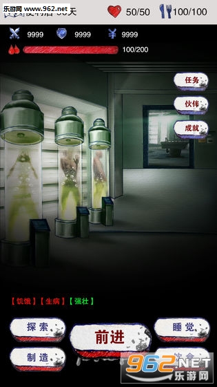 3、人物的状态栏,如饥饿、生病、强壮,让玩家在游戏里要认真地选择下一步计划。