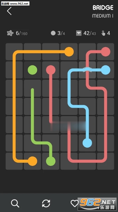 《点的连接桥手游》是一款操作简单容易上手的连接点的益智游戏,玩家需要将相同颜色的点进行连接但是要注意线桥不能交叉重叠,虽然容易理解,但是想要快速通关还是有点难度的,感兴趣的玩家不妨来下载挑战一下吧!