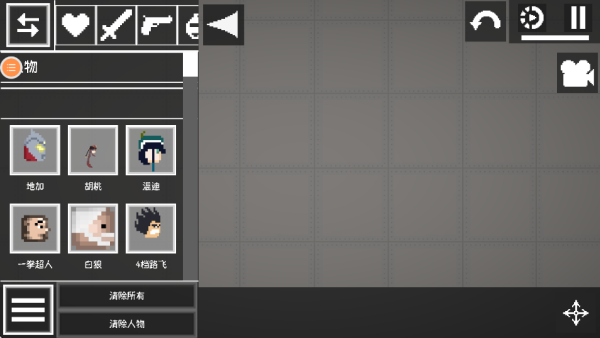 4.进入地图之后点击画面左上角可以唿出菜单栏,能够召唤角色、放置武器道具等。