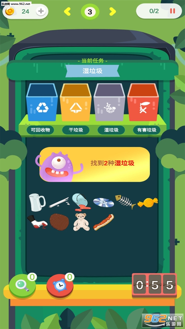 1、垃圾大分类游戏上手十分简单,只需点点即可玩,进行垃圾分类处理;