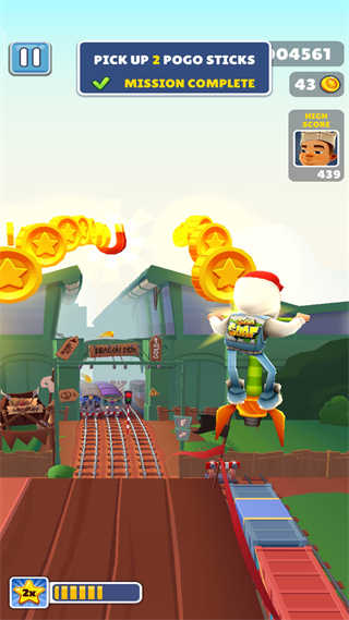 4、道具合理利用。玩家们在游戏中不仅要收集金币,扑面而来的火车也会让你累够呛,在这个过程中你可以使用道具,加速道具能够让你快速前进,使用滑板可以帮助你多出一条生命,点击屏幕两次可以使用道具。