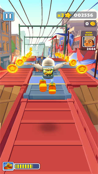 常见道具有:火箭推进背包,该道具可以让角色飞起来一段距离并沿路收集金币;超级运动鞋可提升角色正常情况的下的奔跑速度;金币磁铁可将帮助角色收集附近范围内的所有金币;双倍积分可让一定时间内获得的积分*2,以上这些道具都是有持续时间的限制,所以使用时一定要把握好时机,将收益最大化。