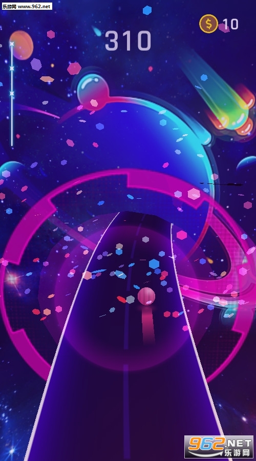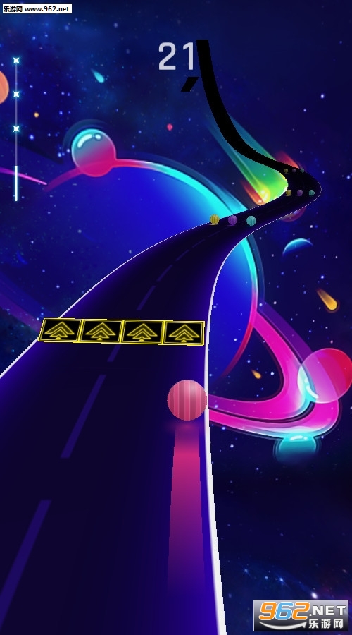 一款非常不错的休闲闯关游戏,游戏中的场景非常的不错,不断的跟随音乐的节奏进行变化,不断的和相同颜色的小球重合通过一个个障碍,小球的速度会越来越快,游戏的操作简单容易上手,推荐给喜欢休闲游戏的玩家。