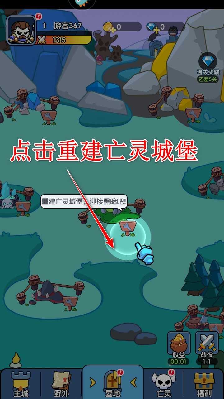 首先点击重建亡灵城堡”,奠定你的势力根基。