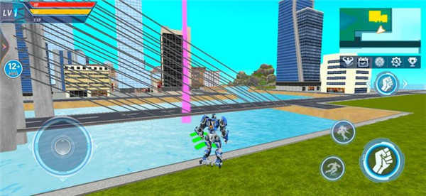 游戏场景高度还原现实物理逻辑,机甲在不同地形中的移动、跳跃、变形均有独特反馈。你可以驾驶机甲穿梭于高楼之间,或潜入海底搜寻敌人踪迹。