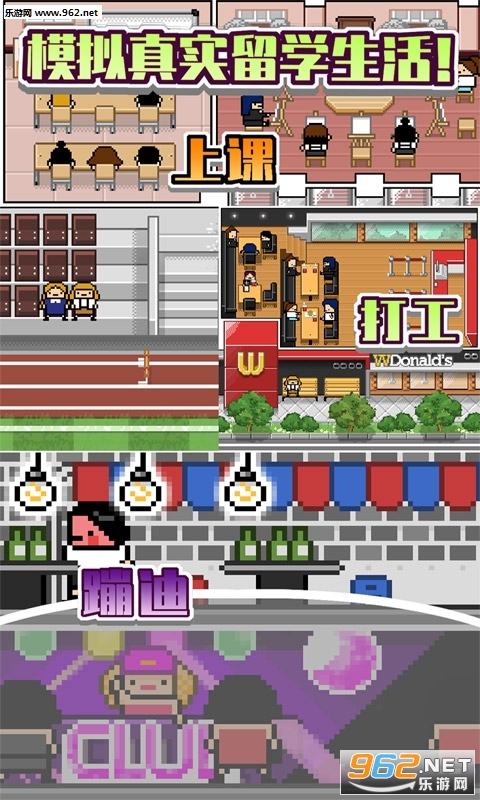 《大学生模拟生活中文版》又叫《五魁首我的留学生活》,是一款非常不错的自由模拟休闲的游戏,玩法轻松简单,画风也更加的简约,简单的像素图形会让玩家们感觉到独特的休闲乐趣,感兴趣的亲们赶紧下载吧。