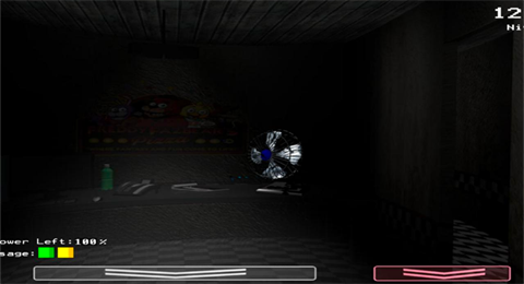 左下角箭头代表面具”,对大多数玩偶具有威慑作用;右下角箭头用于快速切换监控视角,随时掌握全局动向。新手应重点盯防正门与左右两侧通风口——这三个位置是玩偶最常出现的路径。注意,开灯查看需消耗电池,而左上角会实时显示电量。若在清晨6点前耗尽电力,将无法防御玩偶袭击,必死无疑。