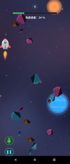 2.游戏操作方法比较简单,玩家只需要操控火箭升空进入太空中,不断的躲避障碍物,确保自身的安全。