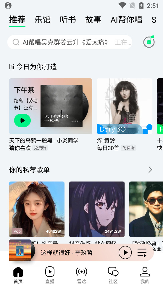 个性化推荐,全站依你的口味定制专属音乐内容