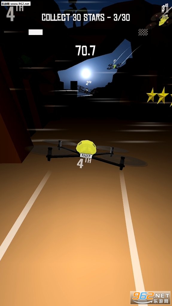 《无人机赛车峡谷游戏》是一款非常有意思的竞速类冒险休闲游戏,画面简约,玩法上手非常轻松。玩家在游戏中控制无人机进行冒险,躲避沿途的各种障碍,飞跃整个峡谷。玩起来还挺过瘾的,操作非常流畅,喜欢的玩家们就快来下载试玩吧!