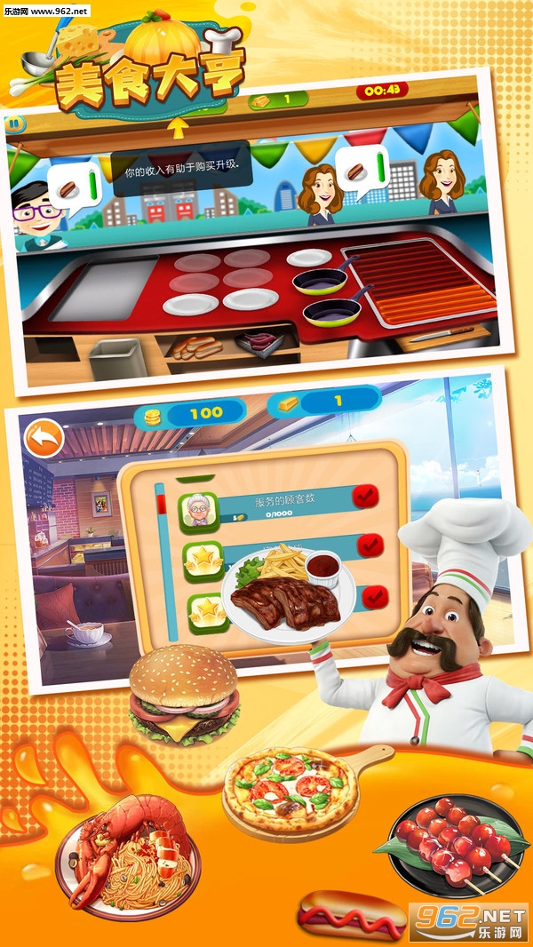 《美食大亨安卓版》这是一款以美食模拟制作为主题的休闲经营手游,游戏采用卡通风格设计非常的可爱美观,玩家在游戏中将化身成为一家餐厅的老板兼厨师,不断研发制作各种好吃的美食,满足顾客的饮食需求,吸引更多的顾客前来消费,赚取更多的利润,升级改造自己的餐厅。