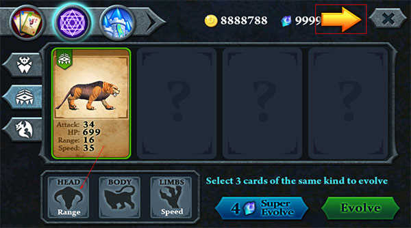 游戏的玩法还是比较的新颖的,支持玩家用三张动物卡牌合成强大的动物,这些动物稀奇古怪,有熊身鸡头的鸡熊或者熊鸡,有虎头犀牛腿犀牛虎等等,这些都可以凭借自己的形象制作出来,而这些动物大致可以分为三类,分别是爬行、直立行走、飞行这三类,相同类别的动物可以相互的合成。实力是唯一的规则,你要打造属于自己的军队,在训练中不断的强化他们,抵御其它领主的侵略。