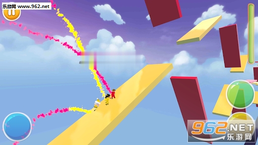 在游戏中奔跑的平台将分为红色与黄色两种,玩家在什么颜色的平台上奔跑,就需要让角色变身成为什么颜色,否则就会在瞬间粉身碎骨,所以玩家就需要在恰当的时候点击左侧屏幕来让角色摇身一变成为另外一种颜色。