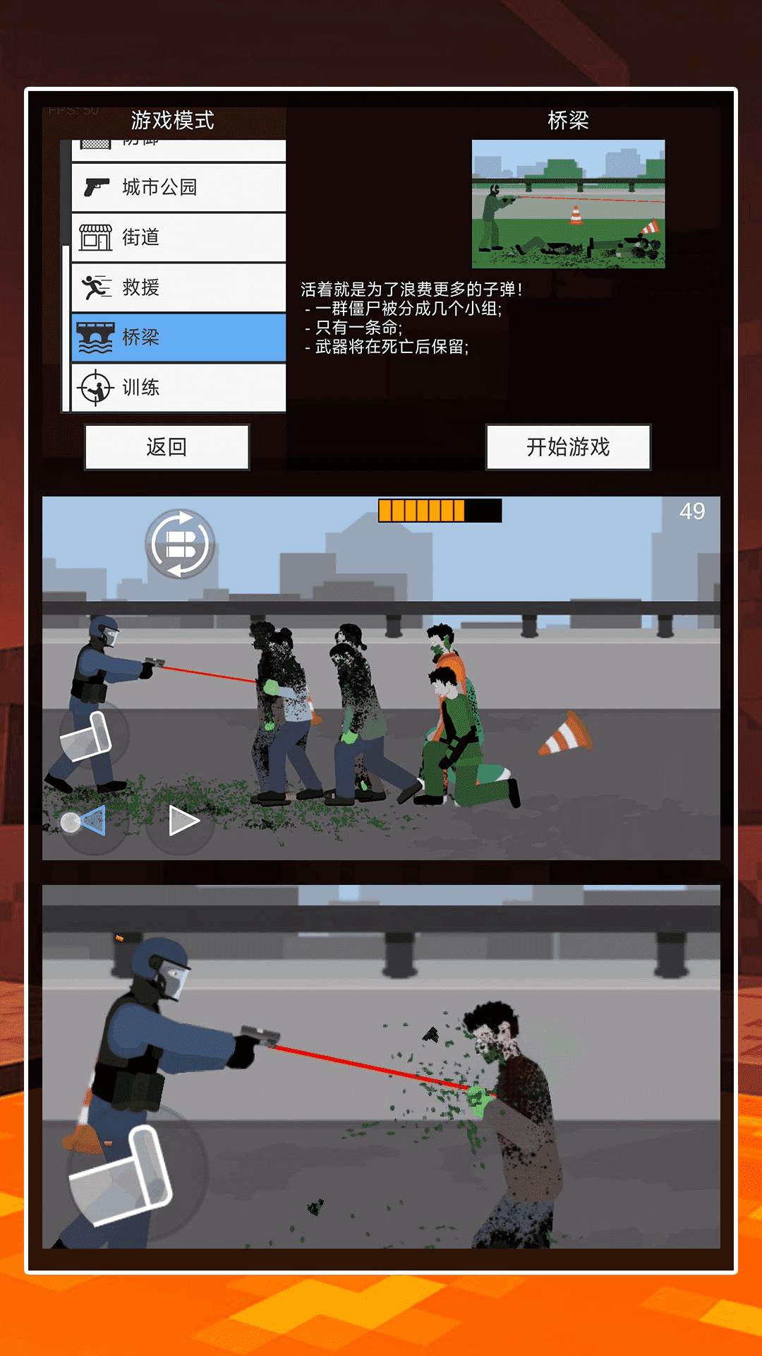 1. 玩家在游戏中将扮演一名在丧尸危机中幸存下来的战士,需要在一个被病毒摧毁的二维化世界中努力求生。