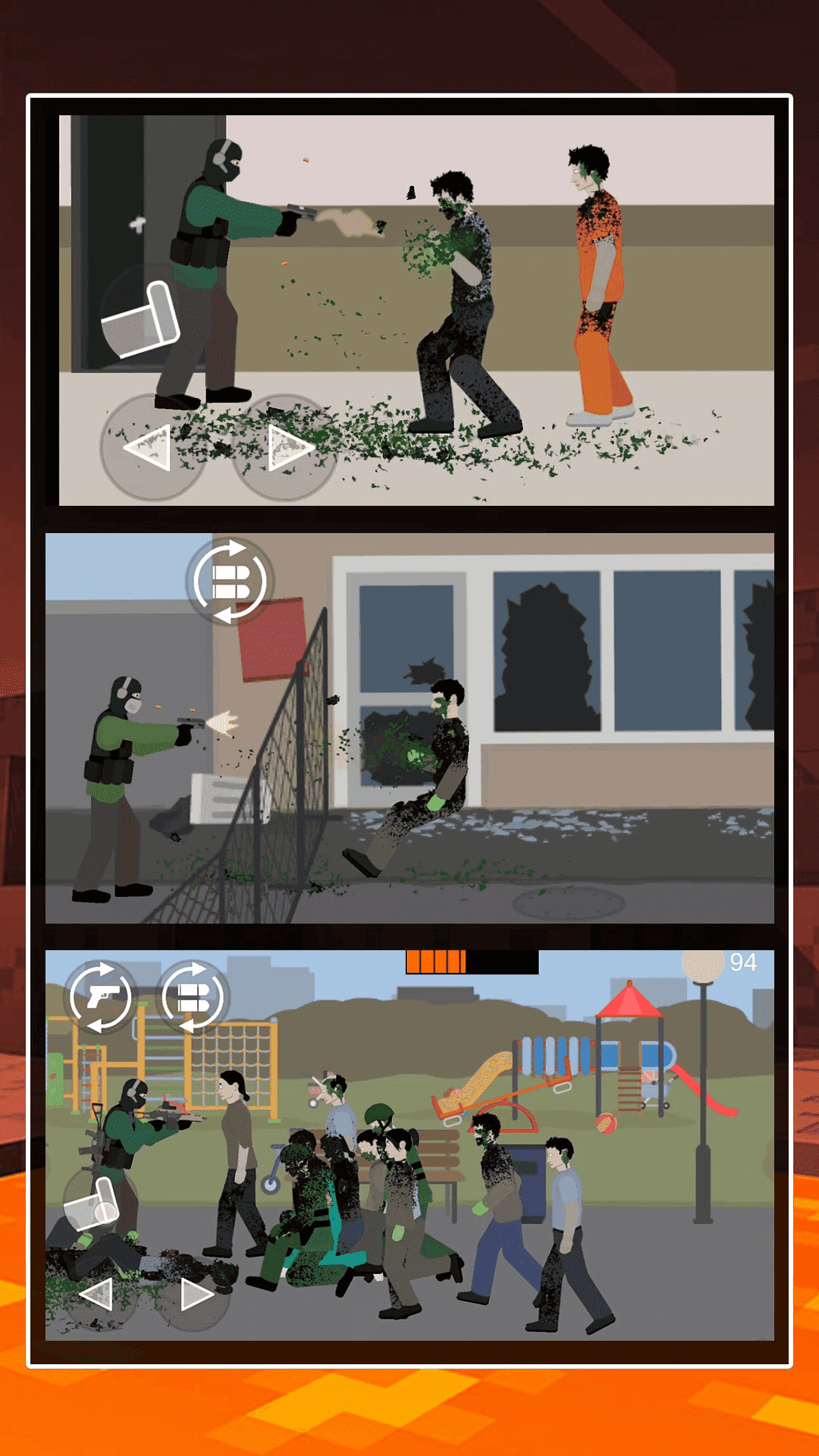 平面僵尸浩劫是一款以后世界末日为背景的横版僵尸射击游戏。游戏通过精心设计的侧面视角,巧妙地压缩空间维度,营造出令人窒息的压迫感和紧张感。游戏中,玩家可以体验到躲避、射击和近战攻击之间无缝流畅的操作。精准的判断系统,保证每一次操作都能得到即时反馈的快感。