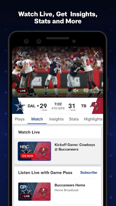 访问NFL游戏通行证,NFL RedZone,NFL商店等