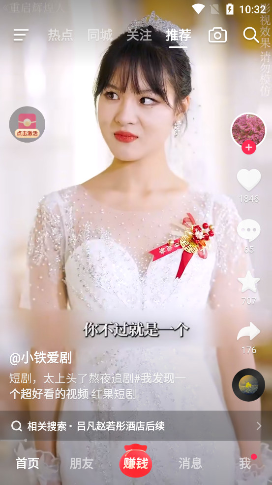 1、已经注册了抖音极速版app账号的用户,在登录后点击下方的【赚钱】功能按钮可以进入邀请活动页面。