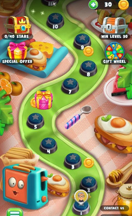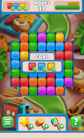 《厨房爆破手游》是一款有趣的三消游戏,就跟大部分的消除游戏的玩法一样,玩家只要两个或者以上一样的方块在一起就可以进行消除,相同方块的数量越多就越能生成厉害的道具,非常能打发时间。