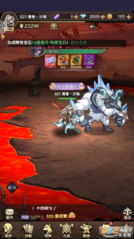 打败更多BOSS——更多炫酷压迫力极强的强力BOSS等待你的挑战,挑战成功可获得大量战胜奖励。