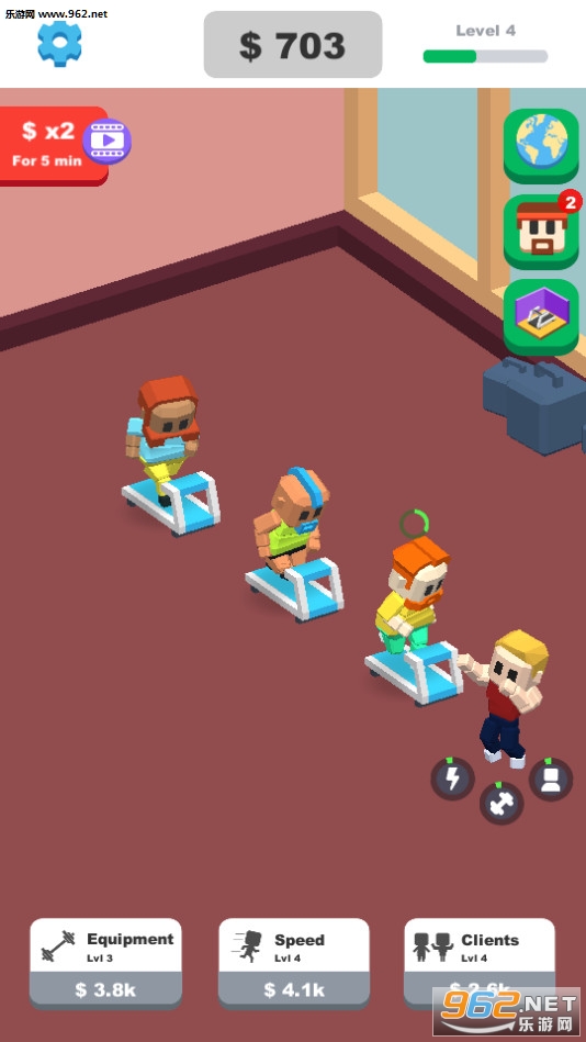 一款让你当上一个健身房的老板,招呼你健身馆里的客人们健身的游戏,这款游戏不需要你进行额外的操作,只要点击升级你的健身馆就好了,你可以升级各种健身器材,你的健身馆越高级,可以收的钱就越多,就这样良性循环下去,可以让你马上就成为一个健身大亨。