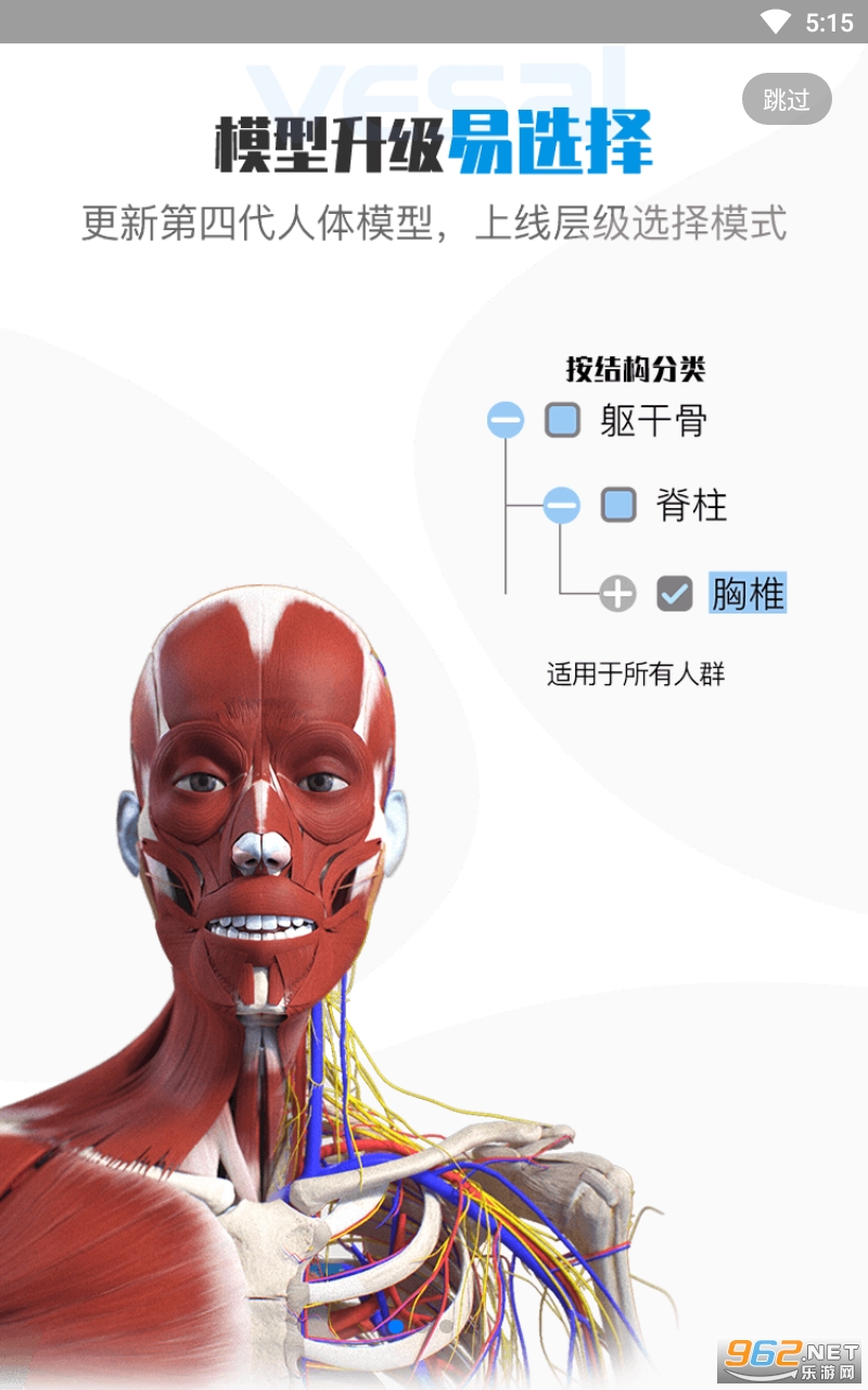 根据医学规范,提供权威的系统解剖、局部解剖、经络腧穴、肌肉起止点、肌肉运动、骨性标志、骨学结构、内脏标记、精品微课、测验练习等300多个模块内容,为用户提供从整体到局部的全方位3D医学图谱。