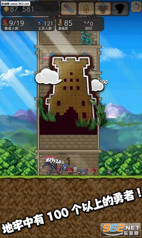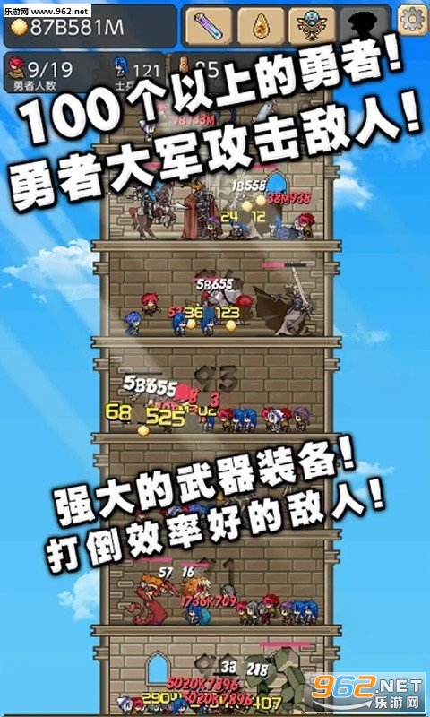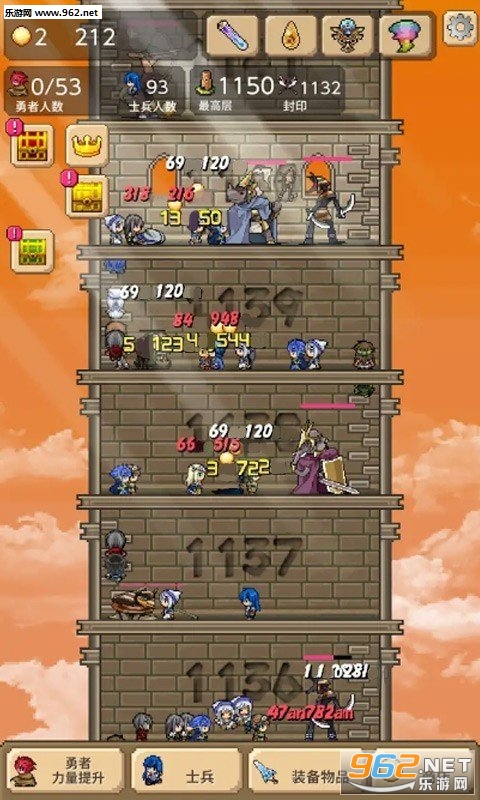 总共超过上千层的魔塔要爬哦,尽量在几乎无尽的战斗中尝试提升英雄的力量加快寻找魔王的效率;