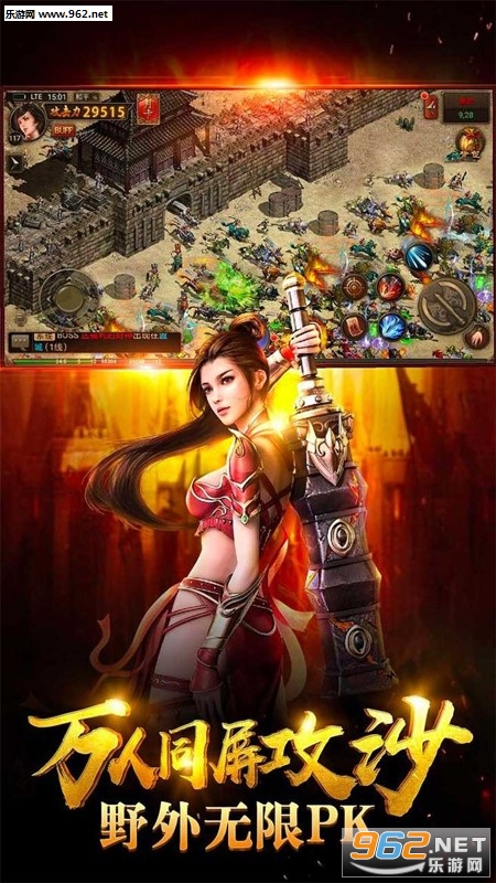 经典沙城争霸战、帮会战 一触即发,高自由度的战场设定,简单易操作,千人攻城可以自由排兵布阵完成攻防,告别无脑战斗,千人同屏,再现功沙盛况!