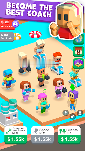 开始在一个几乎没有运动器材的小房间里管理你的健身房,然后升级到健身房连锁店,有很多健身俱乐部,如屋顶,开放空间,海滩,体育场,瑜伽馆,水上乐园等等!