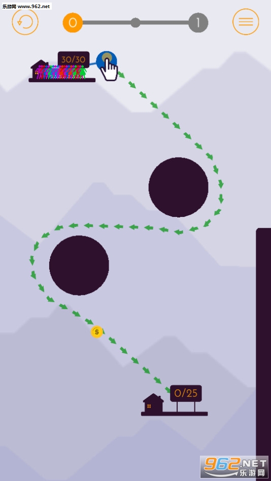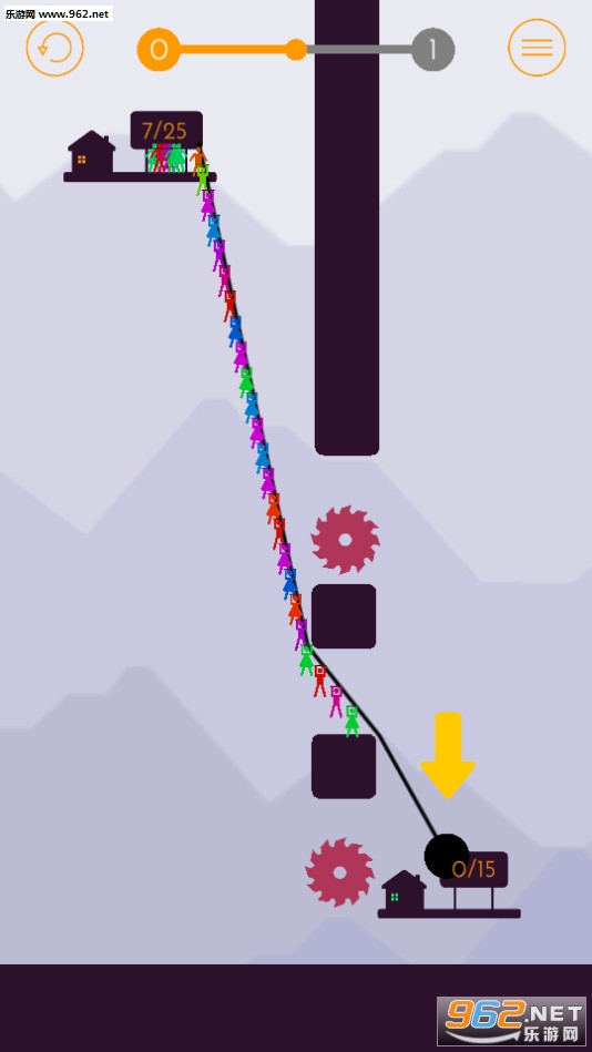 为了营救在这个危险山谷的起点等待的朋友,用手指画一条线,到达另一个家后,点击屏幕让乘客走上滑索。你的手指在屏幕上停留时间越长,乘座滑索的乘客就越多。为了避免危险,你可以在区块周围绘制线条,你可以像绳索一样移动线条。此游戏机以鞭打绳索为基础。