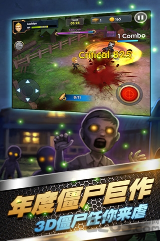 《3d全民大战僵尸》是一款FULL 3d 斜45°视角的末世系动作射击手游。游戏采用半写实卡通风格的画面表现。战斗为触屏操作,简易操作畅快无比,并且融入动作元素与众多技能,整个战斗过程紧张刺激。