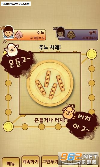 《掷柶游戏》是一款卡通风经典棋盘类游戏,游戏根据在朝鲜韩国很流行的掷柶游戏改编而来,让大家可以直接在手机上面玩韩国,朝鲜人都喜欢玩的掷柶游戏,通过原汁原味的掷柶游戏规则,来和其他的玩家角逐,看看谁更厉害!