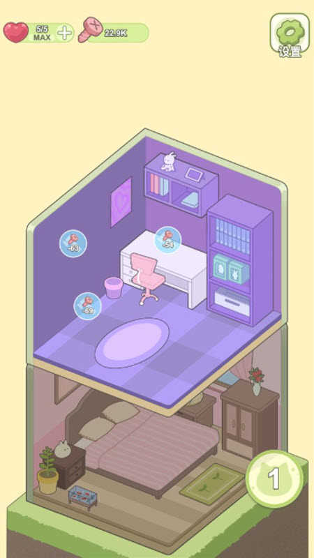 2. 房间采用斜向2.5D视角呈现,随着关卡推进,家具与装饰品逐步解锁,带来满满的收集与装扮成就感。