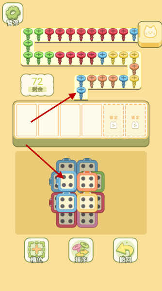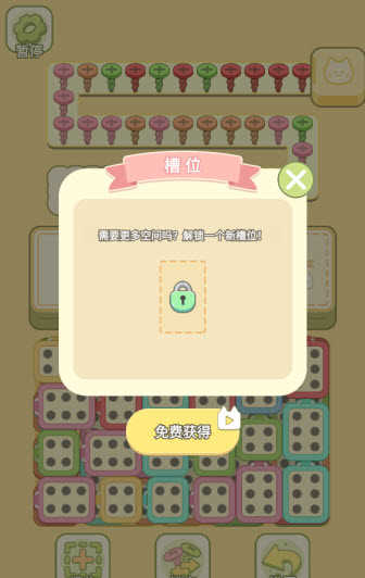 4. 遇到卡关?别担心!点击关卡底部的槽位按钮,观看广告即可解锁额外收纳槽位,助你更轻松闯关。