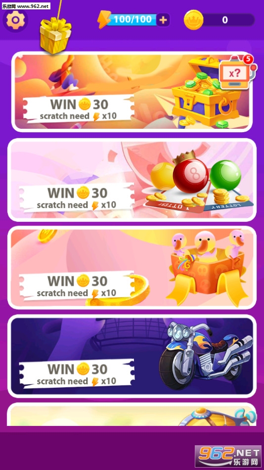 非常有意思的一款刮乐类抢红包手游,游戏画面非常的简单明了,各种各样的乐小游戏等你来刮取,不断点击滑动获取更多的金钱,享受的无尽趣味体验。