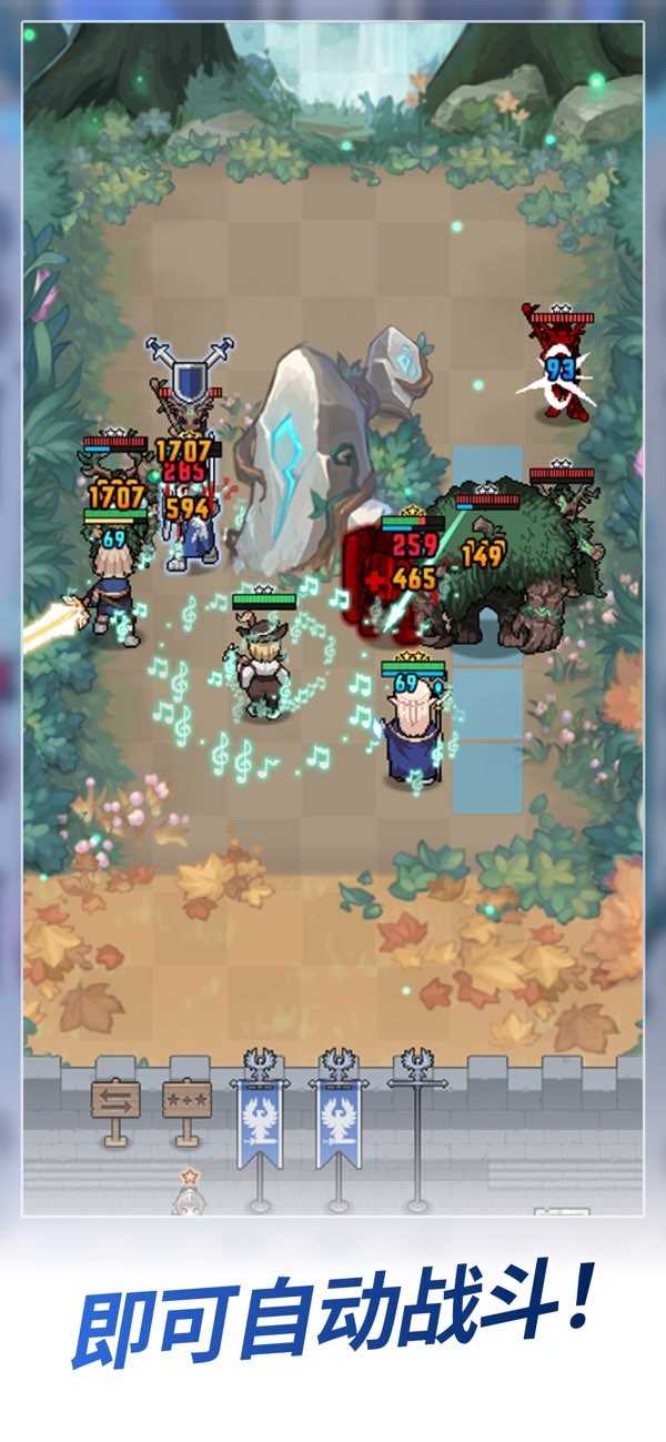 选择最具战略意义的6位英雄。利用通过战斗获得的金币和宝石,强化英雄,释放潜力。