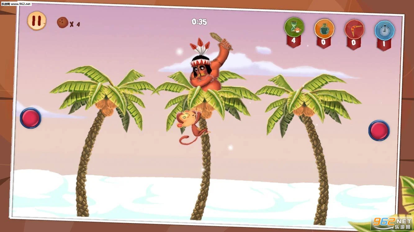 你的任务就是守护好自己的椰子树,使用各类工具将小猴子击退,阻止他们进行偷窃。