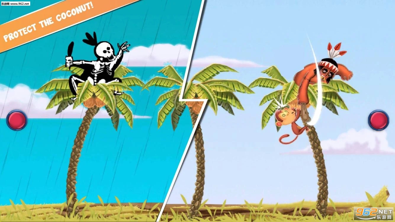 在不要偷椰子游戏中,玩家要扮演一个种植椰子树的原始人,你的椰子树被一群猴子盯上了,阻止猴子们偷走你辛辛苦苦种的椰子,用力地敲打它们赶走它们!自己的椰子树由你自己来守护。