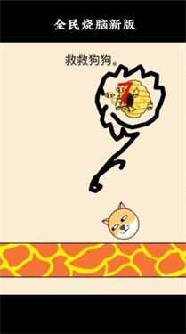 通关方法:一样是画一个半圆的圈将两个狗狗圈在里面,但是要注意不要让狗狗掉在岩浆里。