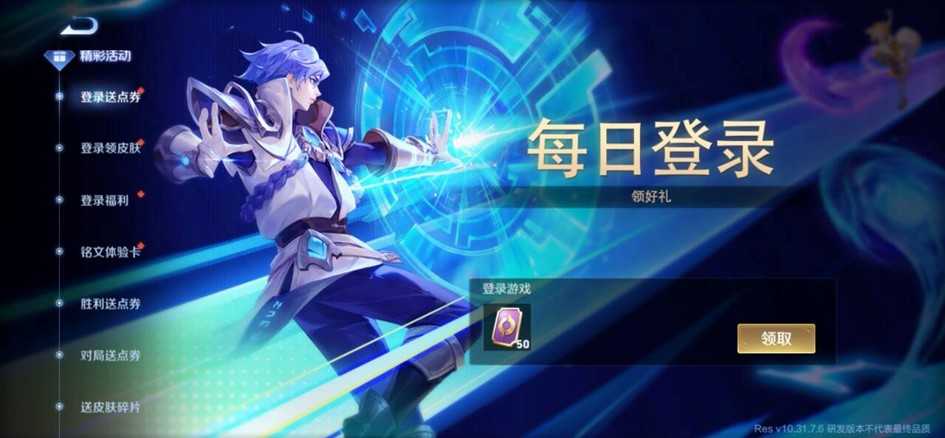 活动规则:每日登录游戏,即可在活动界面领取50绑定点券!轻松上线,奖励到手!