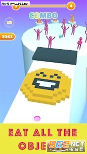 2、最快的速度吞噬掉所有的方块建筑进行闯关,玩法模式很简单,相当的考验手速哦