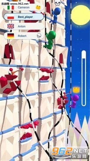 2、玩家需要利用攀岩上的石头当做支撑点往上用力,而这些石块数量是有限的,很可能被对手占据,所以刚开始的领先很重要,有一定的选择权;