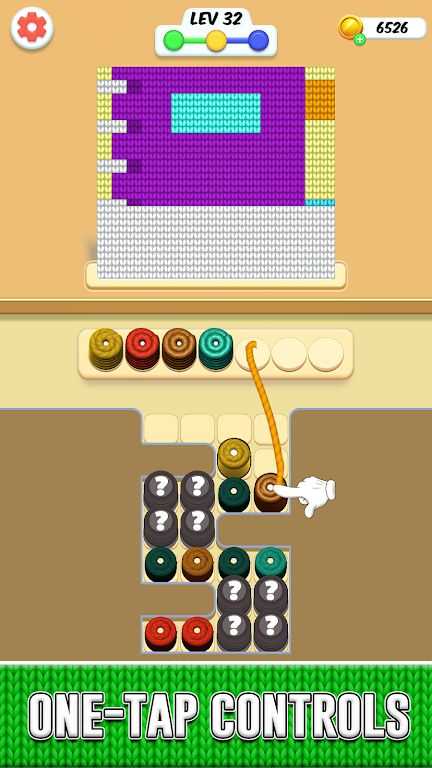 《线程排序》以毛线编织”为核心主题,巧妙地将合成玩法与手工艺美学结合。玩家通过不断合并相同毛线团,逐步解锁精美编织图案——从简单几何图形到可爱小动物,每一幅作品都充满匠心与童趣。