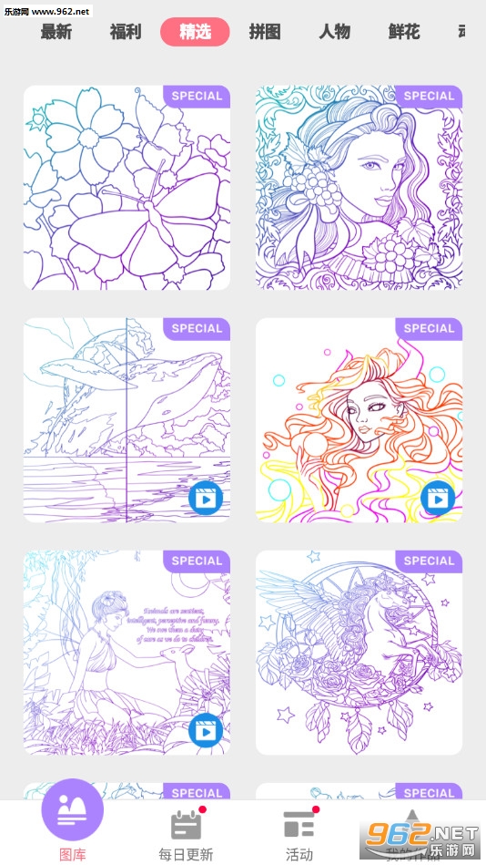 《快乐颜色幻想手游》是一款画面清新的填色解压游戏,游戏中有着鲜花、动物、人物等众多不同的作品可以选择,朋友们可以选择喜欢的图片进行挑战,点击数字然后在对于的数字中填入对应的颜色,全部填满之后会得到完整的图片。