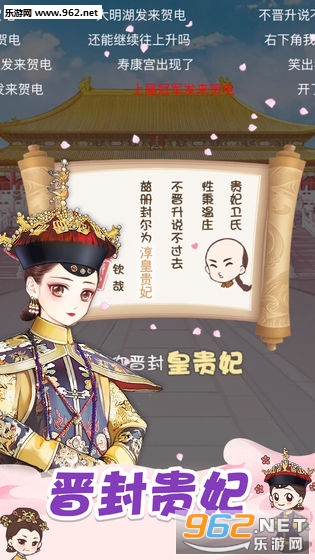 趣味的后宫养成游戏,玩家将从一个宫女不断的晋升成为尊贵的皇后,与后宫中的贵妃们斗智斗勇,想尽办法讨皇上开心,升级打造自己的宫殿等,喜欢的朋友可以下载试试。
