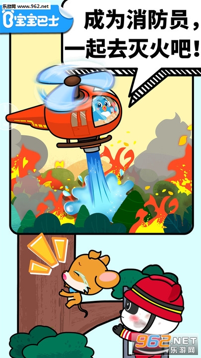 宝宝消防安全游戏通过职业体验+趣味问答题的形式,对儿童进行消防安全教育,并教会儿童在遇到危机事故时如何自救;
