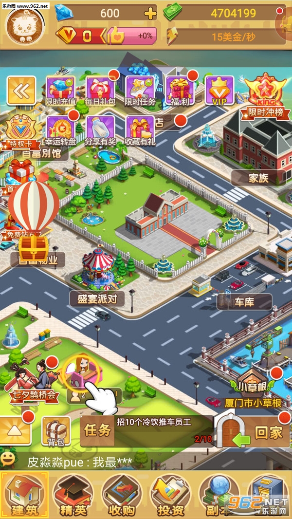 城市造造造,是一款放置点击类的模拟经营休闲游戏。游戏中你扮演的是从白手起家的小商贩到创立商业帝国的世界首富。开挂的人生、逆袭的传奇就在眼前,进来体验下一朝暴富的真实感吧!