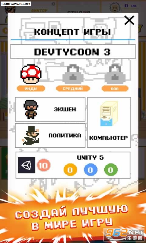 这是一款像素风格类的休闲娱乐类游戏,游戏中你将要去化身为游戏制作大师,在这里研发自己的游戏,你可以去成立自己的游戏开发公司,研发更多的游戏,获得广大玩家的喜爱。