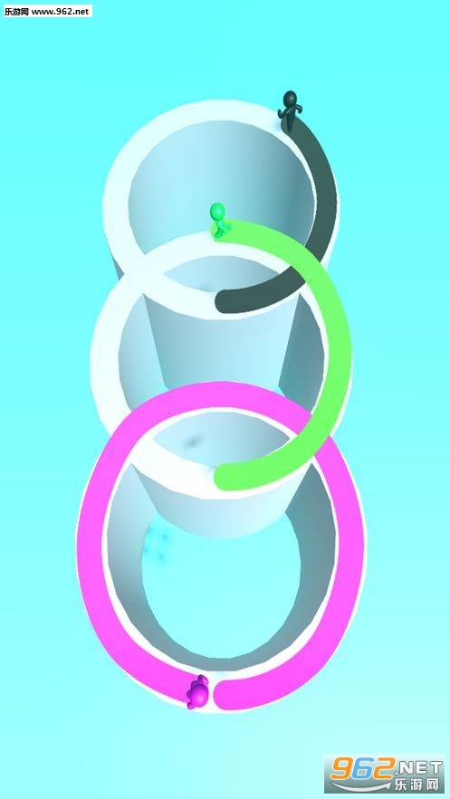 1、玩家需要操作不同的小人在场景中进行各种奔跑,并将跑道上涂满颜色;