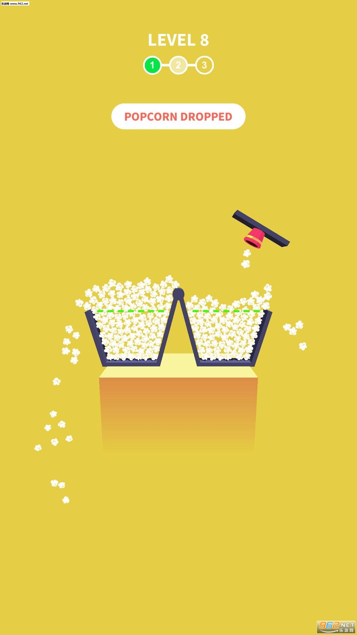趣味的闯关游戏,玩家需要将爆米花填满指定的区域,注意合理的移动桶中的爆米花,让爆米花掉落在合适的位置,喜欢的朋友可以下载试试。